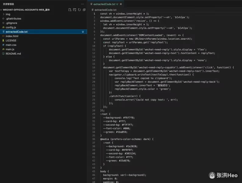既然遇到了痛点,那不如想办法解决。考虑到平时最常用的开发工具是 Visual Studio Code(VS Code),我就想着能不能开发一个插件来自动处理代码整理的工作。本来打算自己开发,但在上网过程中突然看到张洪Heo的一篇文章,他已经开发过一款 “软著代码生成器” 插件了,接下来就把它的使用方法分享给有需要的朋友。