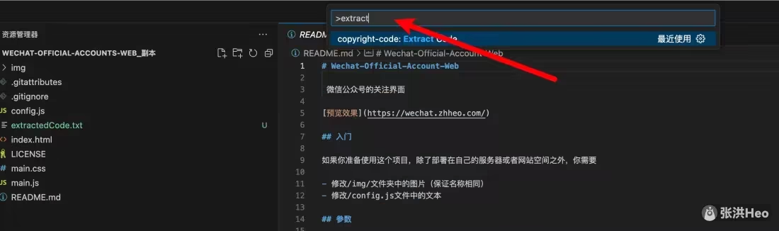 软著代码生成或英文指令Extract Code,点击回车启动插件;